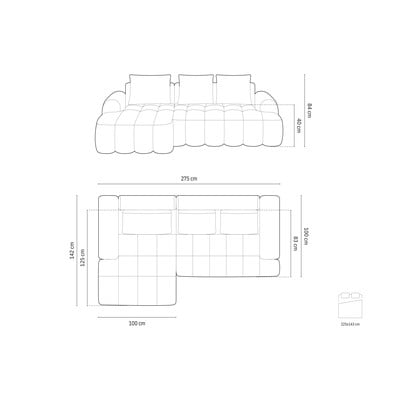 Con rivestimento in vellutoAllungabile/con contenitoreCon penisola a sinistra/con chaise loungeGrigioAdatto per animaliA quattro postiLarghezza totale 275 cm