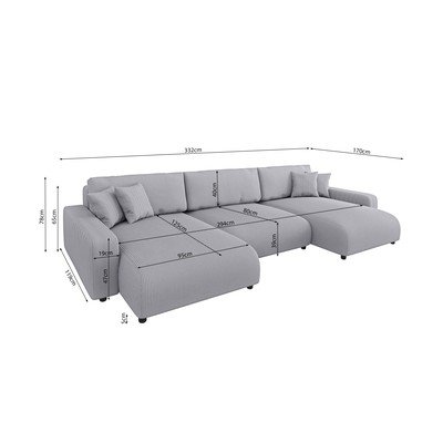 Divano angolare SaraCon rivestimento in velluto a coste, allungabile/con contenitore, a U, grigio chiaro, a cinque o più posti, larghezza totale 332 cm