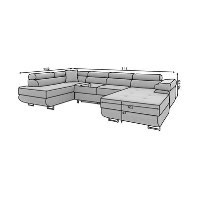 Reclinabile/allungabile/con contenitoreCon penisola a destra/a UGrigio chiaroA cinque o più postiLarghezza totale 345 cm