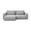 Divano angolare KapuaCon rivestimento in velluto, allungabile/con contenitore, con penisola a sinistra/con chaise lounge, grigio chiaro, a tre posti, larghezza totale 240 cm
