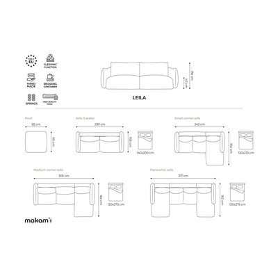 Divano angolare grigio chiaro allungabile (con penisola a destra/con chaise lounge) Leila – Makamii