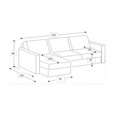 Con penisola a sinistra/con chaise loungeGrigio chiaroA quattro postiLarghezza totale 278 cm