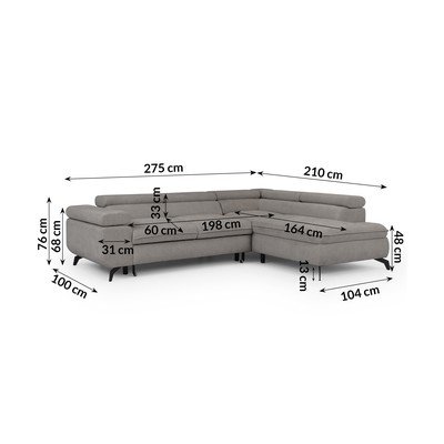 Con rivestimento in cinigliaReclinabile/allungabile/con contenitoreCon penisola a destra/a LGrigio chiaroAdatto per animali/antimacchiaA quattro postiLarghezza totale 275 cm