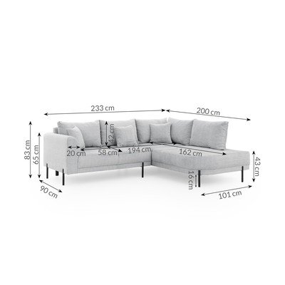 Con rivestimento in cinigliaCon penisola a destra/a LGrigio chiaroAdatto per animali/antimacchiaA quattro postiLarghezza totale 233 cm