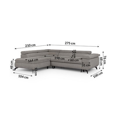 Con rivestimento in cinigliaReclinabile/allungabile/con contenitoreCon penisola a sinistra/a LGrigio chiaroAdatto per animali/antimacchiaA quattro postiLarghezza totale 275 cm