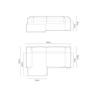 Con rivestimento in velluto a costeCon penisola a sinistra/con chaise loungeGrigio chiaroA tre postiLarghezza totale 244 cm