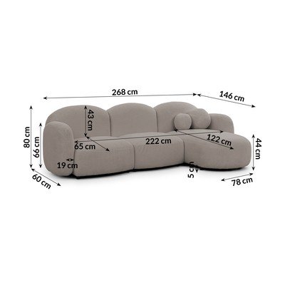 Con rivestimento in boucléCon penisola a destra/con chaise loungeGrigioIdrorepellente/antimacchiaA quattro postiLarghezza totale 268 cm