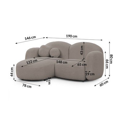 Con rivestimento in boucléCon penisola a sinistra/con chaise loungeGrigioIdrorepellente/antimacchiaA due postiLarghezza totale 190 cm