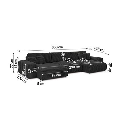 Con rivestimento in velluto a costeAllungabile/con contenitoreA UGrigio scuroIdrorepellente/antimacchiaA cinque o più postiLarghezza totale 350 cm