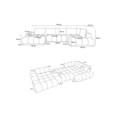 Con rivestimento in cinigliaAllungabile/con contenitoreCon penisola a destra/a UGrigio tortoraA cinque o più postiLarghezza totale 423 cm