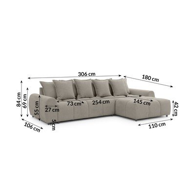 Divano angolare grigio tortora (con penisola a destra/con chaise lounge) Albane – Ropez
