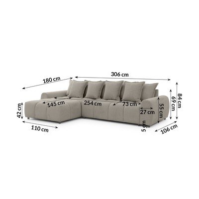 Divano angolare grigio tortora (con penisola a sinistra/con chaise lounge) Albane – Ropez