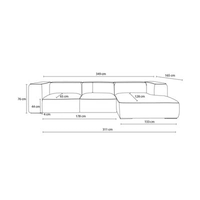 Con rivestimento in bouclé, con penisola a destra, grigio chiaro, a cinque o più posti, larghezza totale 349 cm