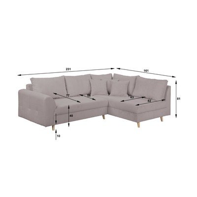 Divano angolare in velluto a coste color crema (angolo destro) Ariella - Ropez
