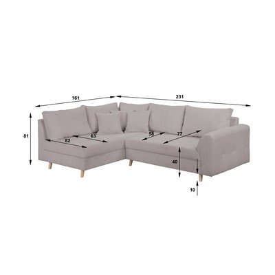 Divano angolare in velluto a coste color crema (angolo sinistro) Ariella - Ropez