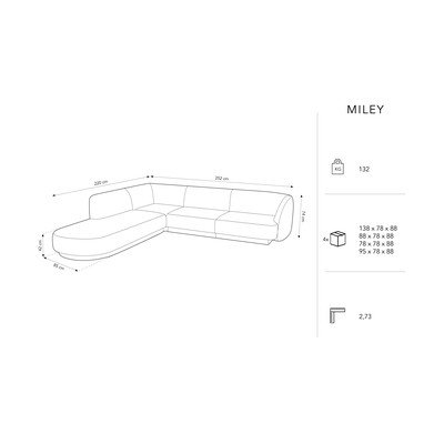 Con rivestimento in vellutoCon penisola a sinistraBeigeA due postiLarghezza totale 260 cmProfondità totale 90 cmProfondità della seduta 60 cm