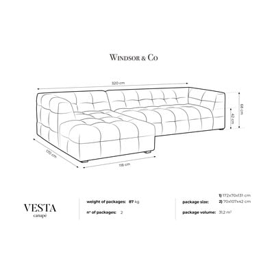 Se avete bisogno di un divano su cui possa stare il vostro gruppo di amici, Vesta di Windsor & Co Sofas è quello che fa per voi. Questo divano angolare in materiale morbido ha una superficie trattata che lo rende protetto dai liquidi. Il suo aspetto elegante ravviverà i vostri interni. È possibile abbinarlo facilmente al resto dell'arredamento.