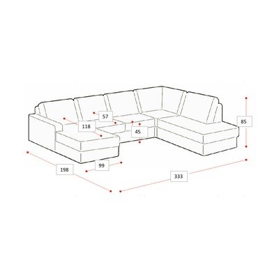 Con rivestimento in ciniglia, con penisola a sinistra/a U, marrone chiaro, a cinque o più posti, larghezza totale 333 cm