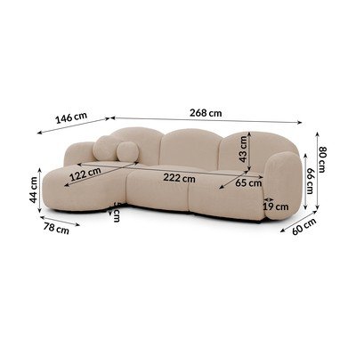 Con rivestimento in boucléCon penisola a sinistra/con chaise loungeMarrone chiaroIdrorepellente/antimacchiaA quattro postiLarghezza totale 268 cm
