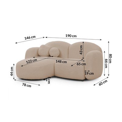 Con rivestimento in boucléCon penisola a sinistra/con chaise loungeMarrone chiaroIdrorepellente/antimacchiaA due postiLarghezza totale 190 cm