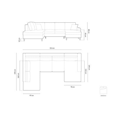 Divano angolare KyotoCon rivestimento in velluto, allungabile/con contenitore, con penisola a sinistra/a U, nero, a cinque o più posti, larghezza totale 313 cm