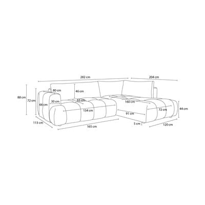 Con rivestimento in cinigliaAllungabile/con contenitoreCon penisola a destra/a LRosaA quattro postiLarghezza totale 282 cm