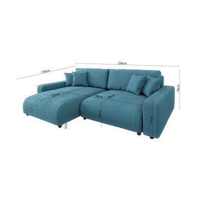 Con rivestimento in velluto a costeAllungabile/con contenitoreCon penisola a destra/con penisola a sinistra/con composizione variabile/con chaise loungeTurcheseA tre postiLarghezza totale 234 cm