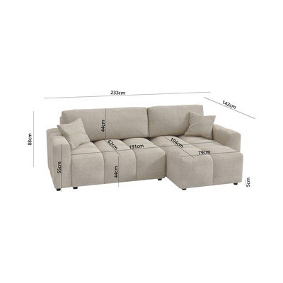 Allungabile/con contenitoreCon penisola a destra/con penisola a sinistra/con composizione variabile/con chaise loungeBeige/marrone chiaroA tre postiLarghezza totale 233 cm