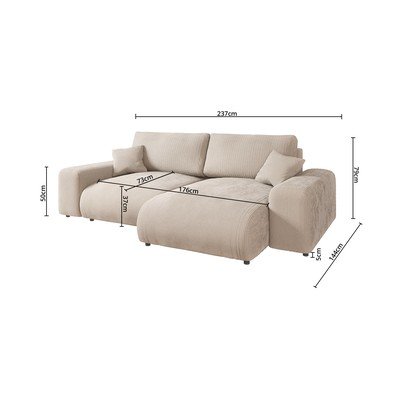 Con rivestimento in velluto a costeCon penisola a destra/con penisola a sinistra/con composizione variabile/con chaise loungeBeigeA tre postiLarghezza totale 237 cm