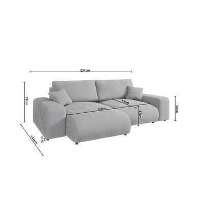 Con rivestimento in velluto a costeCon penisola a destra/con penisola a sinistra/con composizione variabile/con chaise loungeGrigio chiaroA tre postiLarghezza totale 237 cm