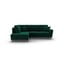 Divano angolare KyotoCon rivestimento in velluto, allungabile/con contenitore, con penisola a destra/con penisola a sinistra/con composizione variabile/con chaise lounge, verde, a tre posti, larghezza totale 241 cm