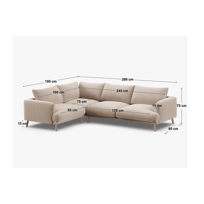 Divano angolare beige (con penisola a destra/a L) con rivestimento in velluto Naomi – Micadoni