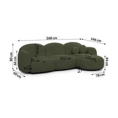 Con rivestimento in boucléCon penisola a destra/con chaise loungeVerdeIdrorepellente/antimacchiaA quattro postiLarghezza totale 268 cm