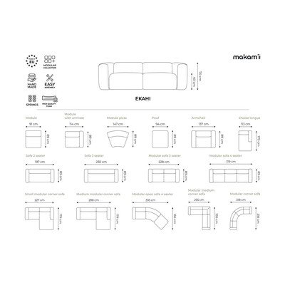 Con penisola a destra/con chaise loungeVerdeA tre postiLarghezza totale 227 cmProfondità totale 179 cmProfondità della seduta 62 cm
