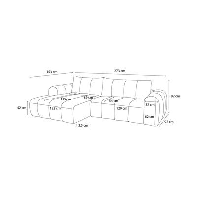 Con penisola a sinistra/con chaise loungeVerde scuroA tre postiLarghezza totale 272 cmProfondità totale 153 cmProfondità della seduta 54 cm