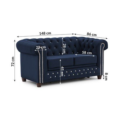 Con rivestimento in velluto, allungabile, chesterfield, blu, idrorepellente/antimacchia, a due posti, larghezza totale 148 cm