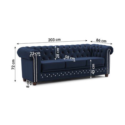 Con rivestimento in velluto, allungabile, chesterfield, blu, idrorepellente/antimacchia, a due posti, larghezza totale 203 cm