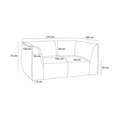 Con rivestimento in velluto a coste, blu, a due posti, larghezza totale 170 cm, profondità totale 100 cm, profondità della seduta 64 cm