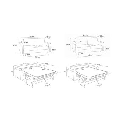 Larghezza totale 220 cm