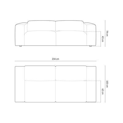 Con rivestimento in ciniglia, reclinabile, color antracite, a due posti, larghezza totale 234 cm