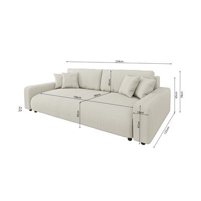Con rivestimento in velluto a coste, allungabile/con contenitore, color crema, a tre posti, larghezza totale 234 cm