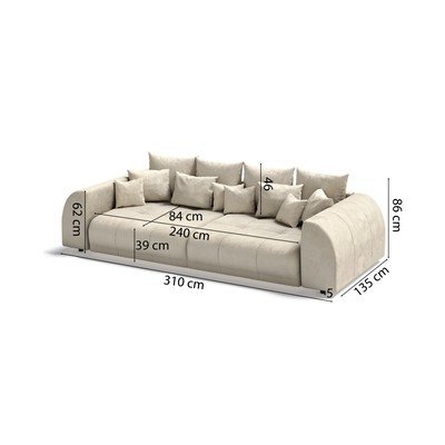 Divano color crema con rivestimento in velluto a coste 310 cm Vanessa – Ropez