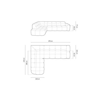 Con penisola a sinistra/a L, grigio, a cinque o più posti, larghezza totale 293 cm