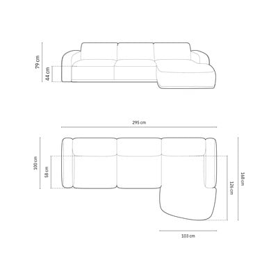 Con rivestimento in vellutoCon penisola a destra/con chaise loungeBlu scuroA tre postiLarghezza totale 295 cm