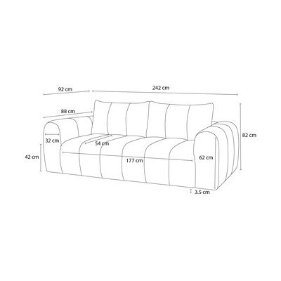 Grigio chiaroA tre postiLarghezza totale 242 cmProfondità totale 92 cmProfondità della seduta 54 cm