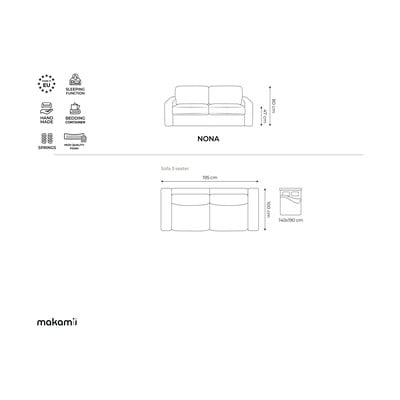 Divano NonaCon rivestimento in velluto a coste, per il riposo quotidiano/allungabile, grigio chiaro, adatto per animali, a due posti, larghezza totale 195 cm