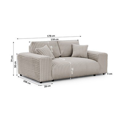 Divano color crema con rivestimento in velluto a coste 178 cm Justin – Ropez