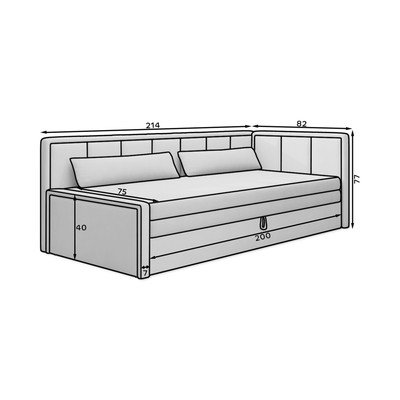 Divano FulgeoCon rivestimento in ciniglia, allungabile/con contenitore, con penisola a sinistra, grigio scuro, a tre posti, larghezza totale 214 cm, con penisola a sinistra