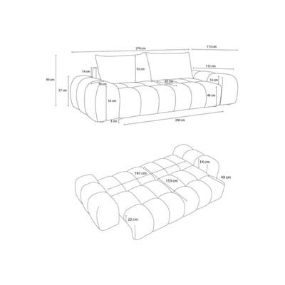 Con rivestimento in ciniglia, allungabile/con contenitore, grigio scuro, a tre posti, larghezza totale 278 cm