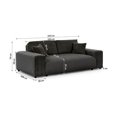 Con rivestimento in velluto a coste, grigio scuro, idrorepellente/antimacchia, a tre posti, larghezza totale 213 cm